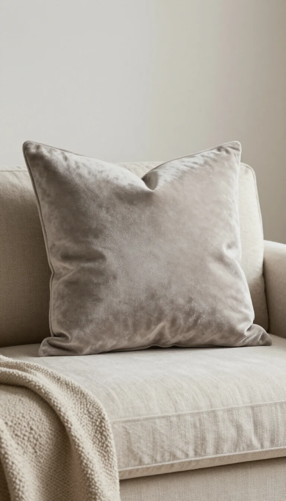 3. Warm Greige Velvet Pillow — Low Sheen