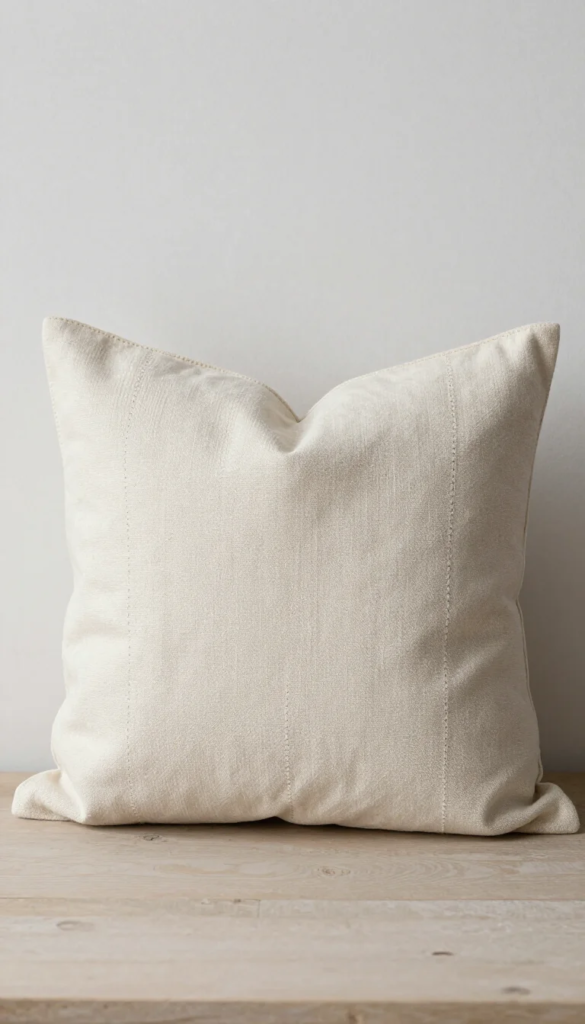 - Size: 20×20 for most sofas. Japandi tends toward fewer, larger pillows rather than many small ones. Two well-chosen pillows beat five mediocre ones in this aesthetic.