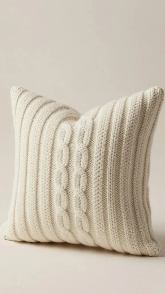 1. Chunky Knit Throw Pillow — Cream Wool Blend